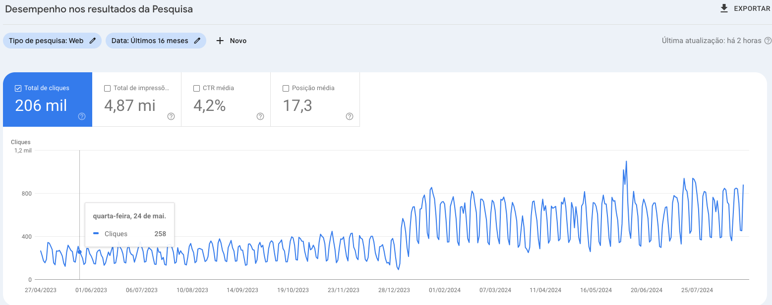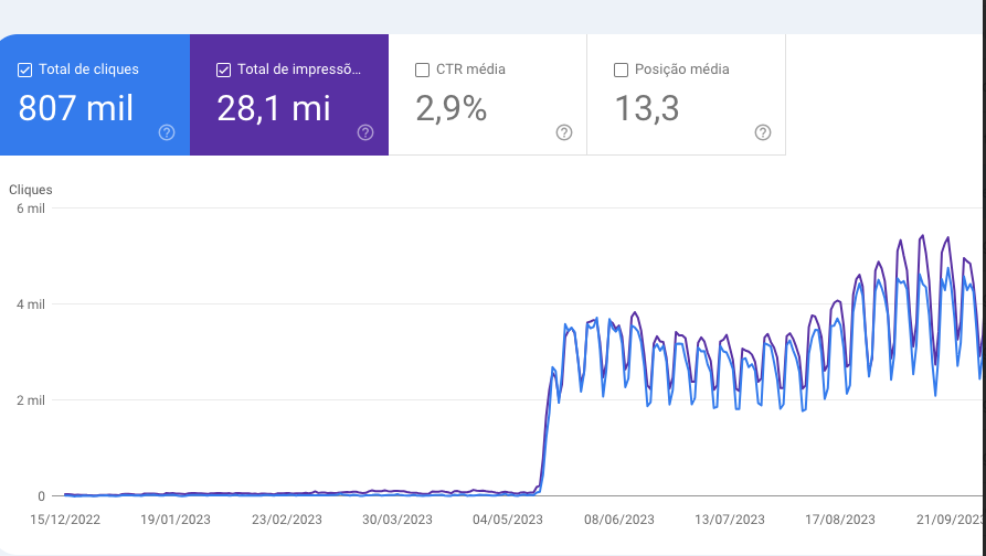 Nossos clientes veem crescimento médio de 300% em impressões e 150% em cliques nos primeiros 6 meses.